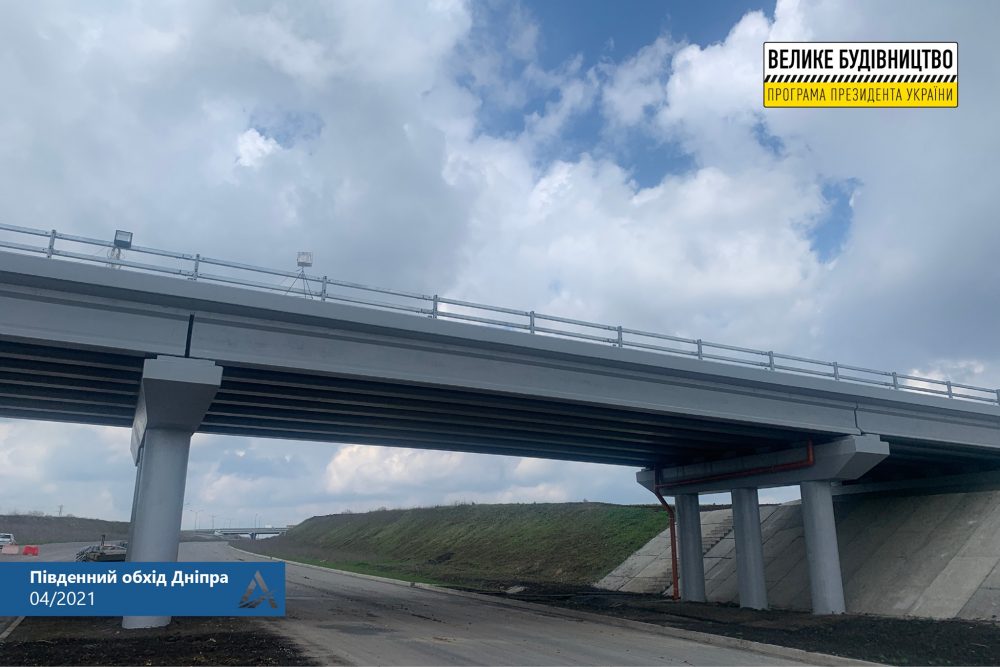 На недавно построенном путепроводе над автодорогой М-04, км. 0 + 500 обхода г. Днепр установлено барьерное ограждение и водоотведение, выполнены работы по покраске. В ближайшее время будут проведены работы по гидроизоляции и устройства покрытия. Назначение сооружения - безопасный проезд сельскохозяйственной техники через дорогу I категории.