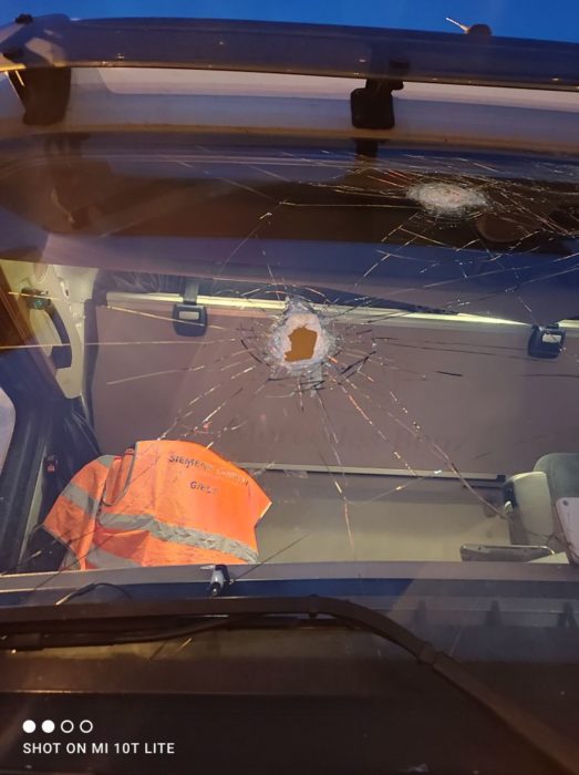 На фотографиях, которые предоставил перевозчик, видны результаты нападения. На лобовом стекле две большие вмятины и несколько пробоин, а дверные окна, похоже, разбиты полностью. По словам Роджерса, таким образом мигранты пытались проникнуть внутрь грузовика в отчаянной попытке пересечь Ла-Манш.