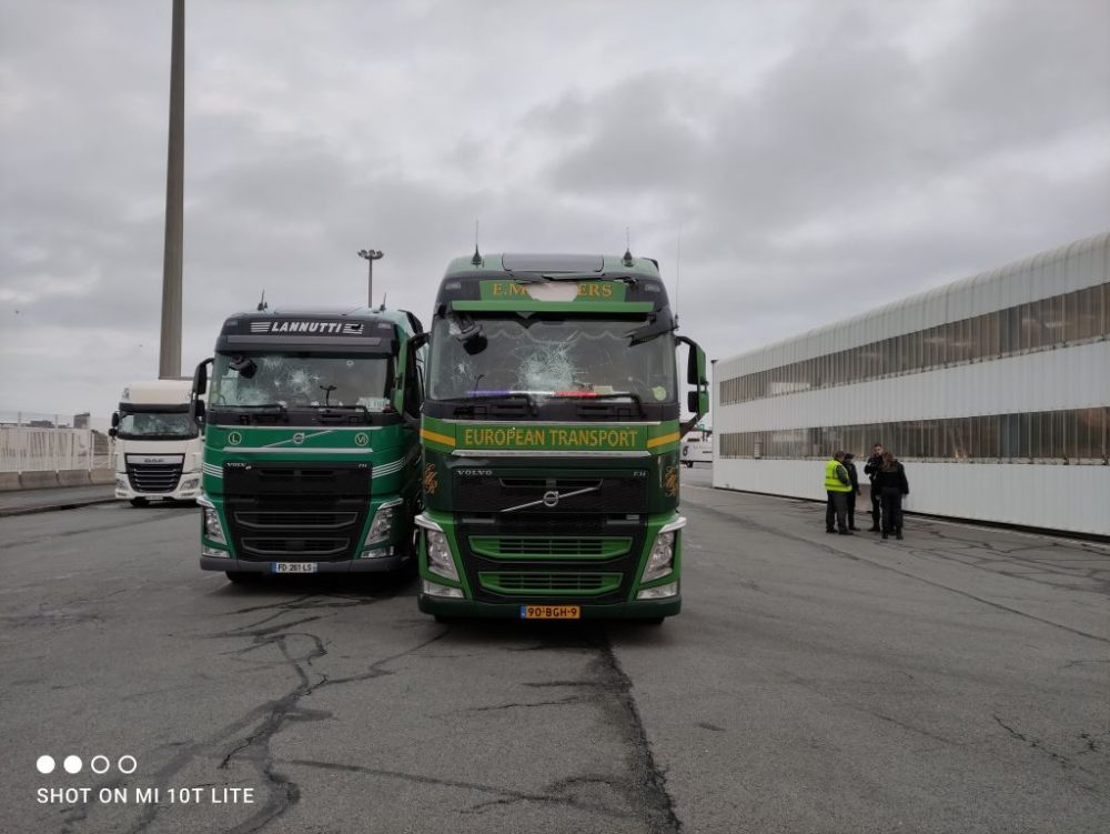 Первым о нападениях сообщил владелец британской транспортной компании Эд Роджерс. Он рассказал местным СМИ о том, как перед въездом в порт один из его грузовиков угодил в засаду банды нелегалов, вооруженных кирпичами и арматурой. В результате, лобовое стекло и дверные окна грузовика были разбиты, повреждено правое зеркало и солнцезащитный козырек, а водитель, по словам перевозчика, был «очень потрясен и расстроен» инцидентом.
